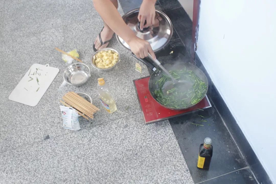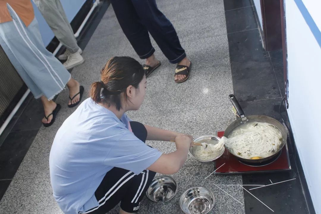 結(jié)束了一天的調(diào)研和教學(xué)工作,隊員們回到宿舍開始準(zhǔn)備晚餐。飯鍋前期待的樣子像極了嗷嗷待哺的小豬,在可憐巴巴的等待郭大廚的晚餐。雖然忙碌了一整天,但在晚飯結(jié)束后大家再次滿血復(fù)活,在宿舍的走廊排練起文藝匯演的節(jié)目。我們想要在三下鄉(xiāng)活動的最后,與孩子們共同演繹難忘的時刻。
