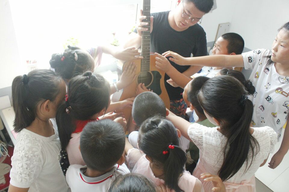 應(yīng)孩子們的要求我們在午休期間開展了興趣班,分別開設(shè)了吉他,攝影,美術(shù),書法四個興趣課程,經(jīng)過今天的吉他興趣課,我們看到了孩子們對吉他這個新物種的渴望與好奇,音樂小郭老師也非常耐心的講解關(guān)于吉他的知識并且為小朋友唱歌。小朋友非常愿意聽,下課時候拽著老師不放,要求老師唱歌.......這就是愛的傳遞。