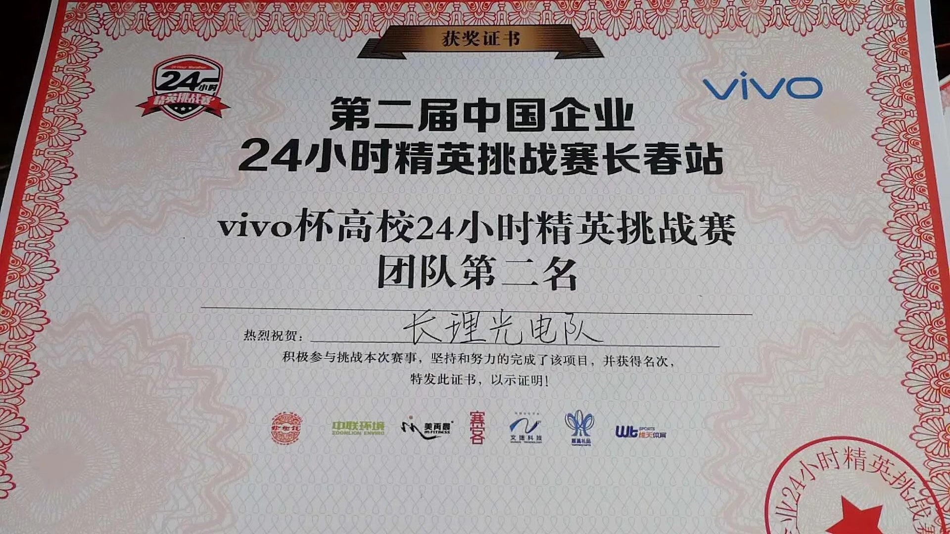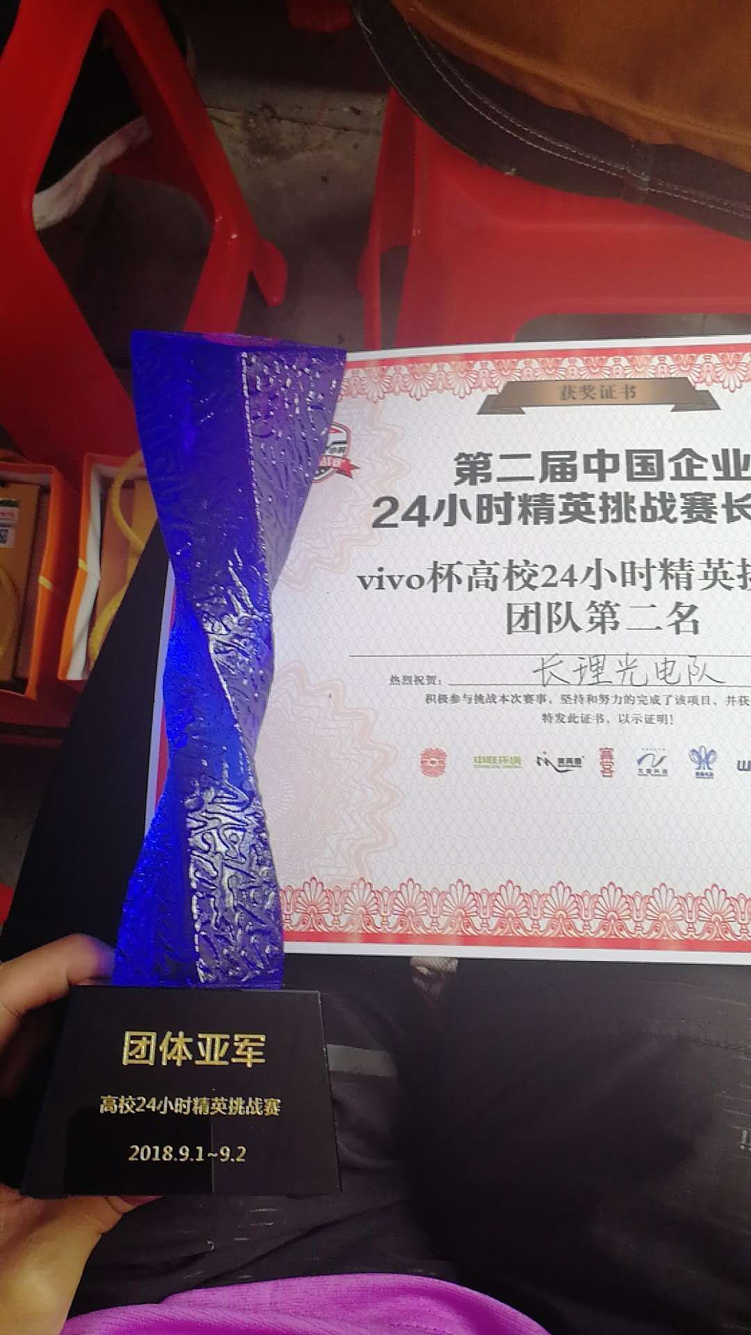 9月1日,我院學(xué)生響應(yīng)vivo的邀請(qǐng),在杜鵬達(dá)的組織下,杜鵬達(dá)、劉鏵、劉金、阮蕓超、馬帥、雷鎰鳴一同組成長(zhǎng)理光電隊(duì)參加了第二屆中國(guó)企業(yè)24小時(shí)精英挑戰(zhàn)賽。經(jīng)過了一天的拼搏和努力,擊敗十只隊(duì)伍,成功將銀牌收入囊中。