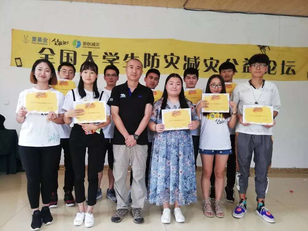 經(jīng)過壹基金的層層選拔后選出全國21位高校大學(xué)生社團(tuán)負(fù)責(zé)人參加此次壹基金“人人來減災(zāi)”全國大學(xué)生防災(zāi)減災(zāi)公益論壇,光電科學(xué)分院知理信行學(xué)習(xí)社社長范增華參加此次論壇并獲得優(yōu)秀團(tuán)隊獎。