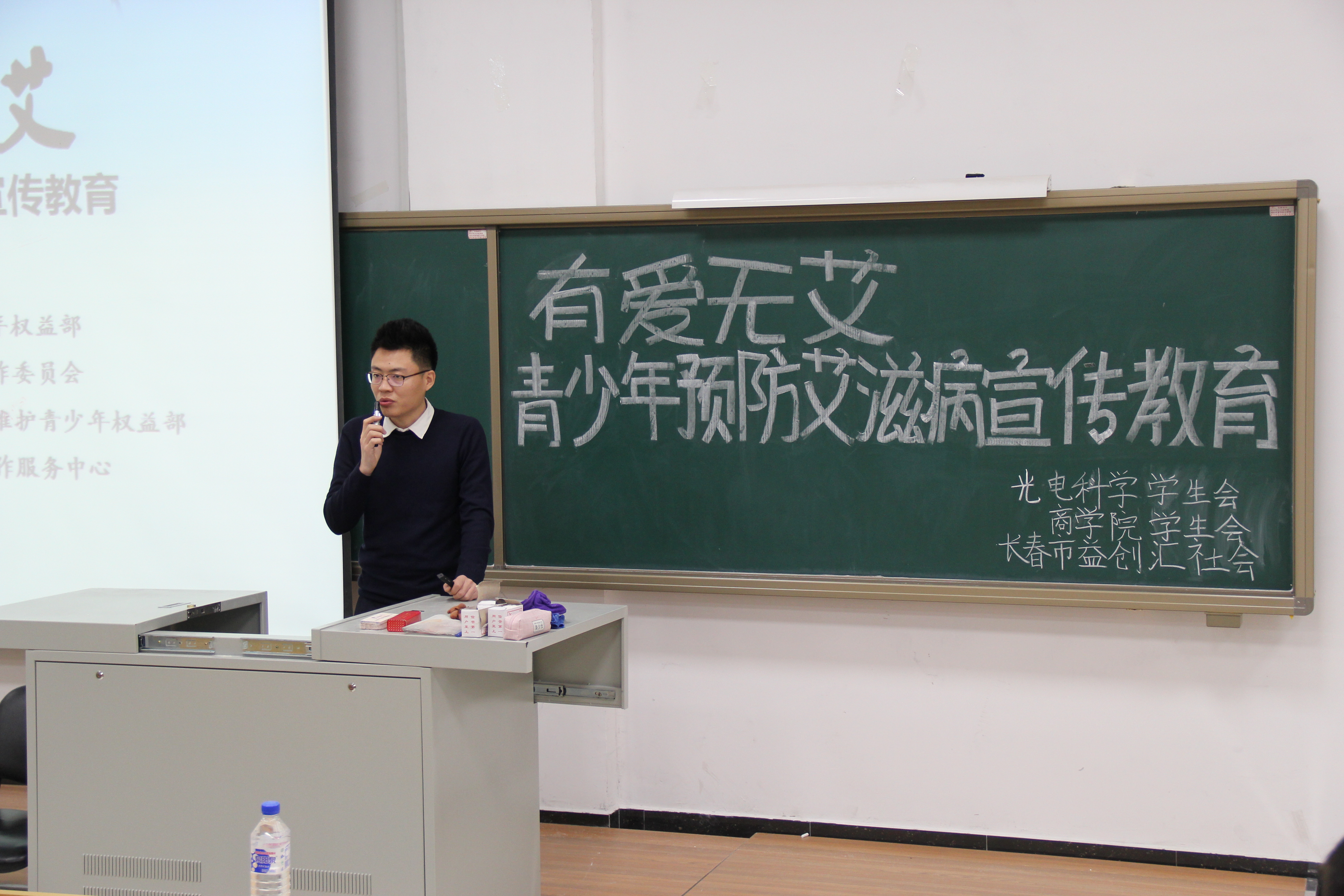 2018年11月16日下午四點半,由長春理工大學(xué)光電信息學(xué)院光電科學(xué)分院學(xué)生會、商學(xué)院學(xué)生會和長春市益創(chuàng)匯社會工作服務(wù)中心聯(lián)合主辦的“有愛無艾,青少年預(yù)防艾滋病宣傳教育”專題講座在主教東階101隆重召開。光電科學(xué)分院團委學(xué)生會指導(dǎo)教師劉可老師出席本次會議。