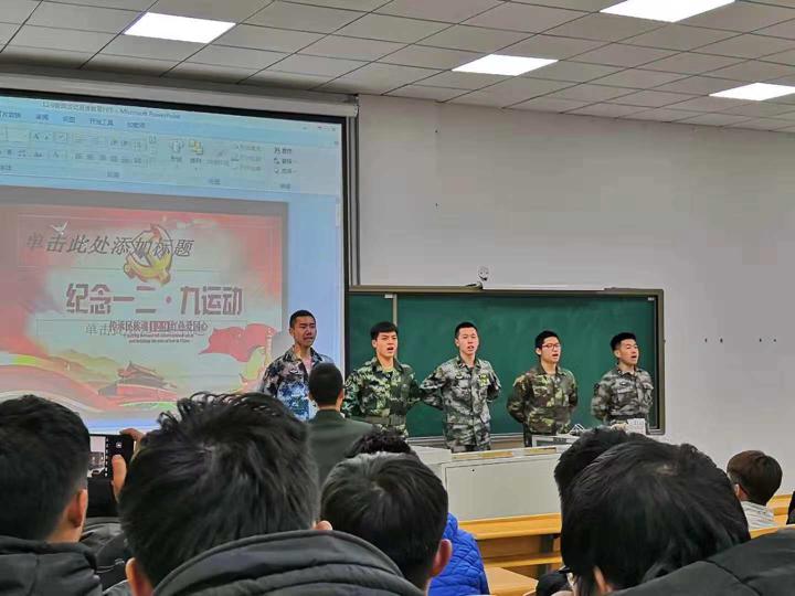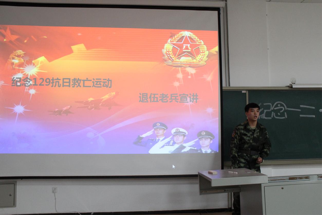 八十三載存書(shū)生意氣赤子心,一二九日揚(yáng)光電學(xué)子愛(ài)國(guó)情。今年是“一二九”愛(ài)國(guó)運(yùn)動(dòng)83周年,為深入貫徹落實(shí)黨的十九大精神,在青年大學(xué)生中扎實(shí)推進(jìn)社會(huì)主義核心價(jià)值觀的踐行,進(jìn)一步弘揚(yáng)民族精神,加強(qiáng)愛(ài)國(guó)主義教育,12月7日下午五點(diǎn),我院在西階301舉辦退役軍人講座紀(jì)念“一二九”運(yùn)動(dòng)83周年,18級(jí)部分學(xué)生參加本次講座。