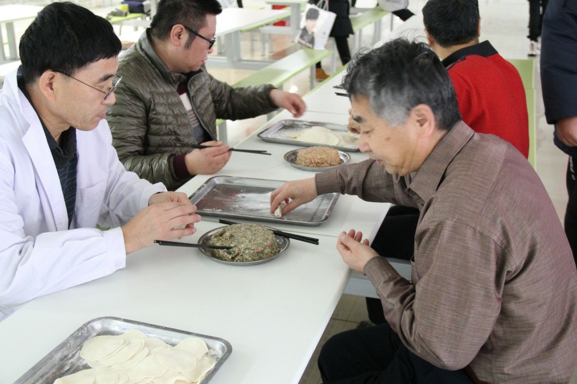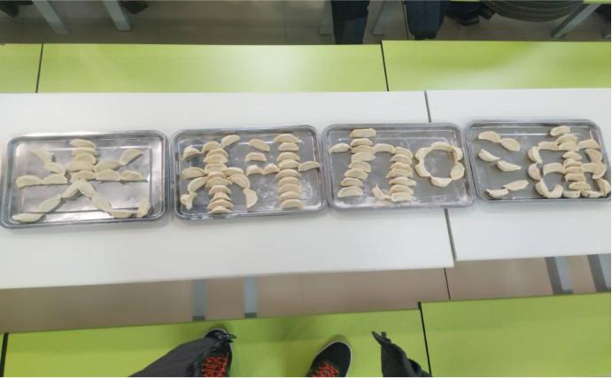 在老師們的共同努力下,餃子順利在考研學(xué)子到來前包好,并被整齊的擺放在盤子里,其中幾盤被十分自然的擺放成“光科加油”四個(gè)字樣,為考研學(xué)子加油。