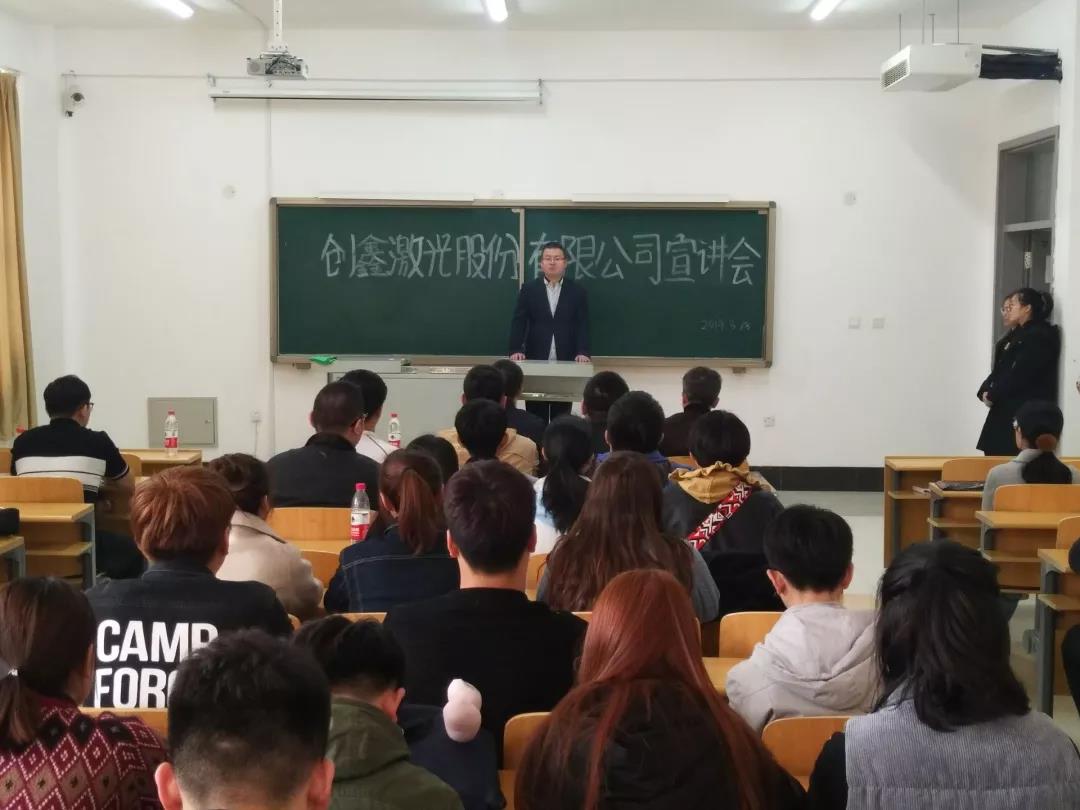 參加本次宣講會的有創(chuàng)鑫激光股份有限公司劉經(jīng)理、原女士、光電科學分院副院長李楊老師和我校部分15級學生。