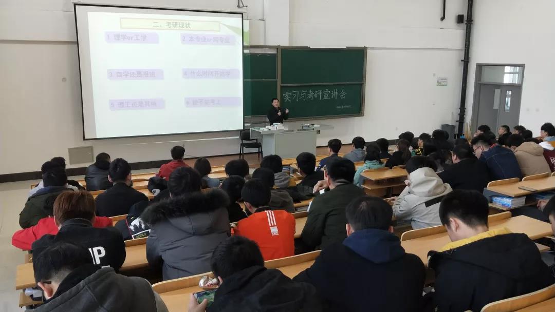 緊接著李揚老師又分析了考研現(xiàn)狀。在考研上是選擇本專業(yè)還是選擇外專業(yè)好呢?選擇考本專業(yè)的研是選擇工學(xué)還是選擇理學(xué)好呢?應(yīng)該要怎么分配時間呢?李楊老師在宣講會上都為16級學(xué)子一一做了解答,讓每一位同學(xué)都能更加了解自己的考研路線。李楊老師告訴大家,無論是考研還是實習(xí)都要付出十分的努力,而不是得過且過荒廢青春。一如我院院訓(xùn)努力、堅持、向前行,人生一定贏!