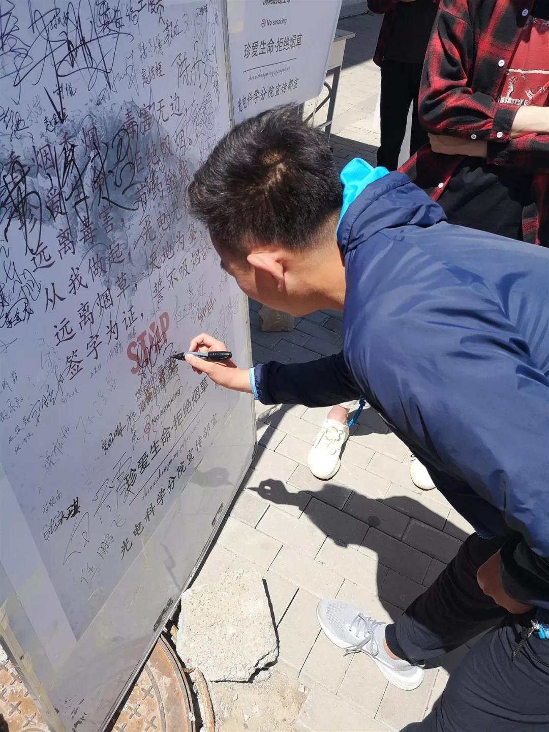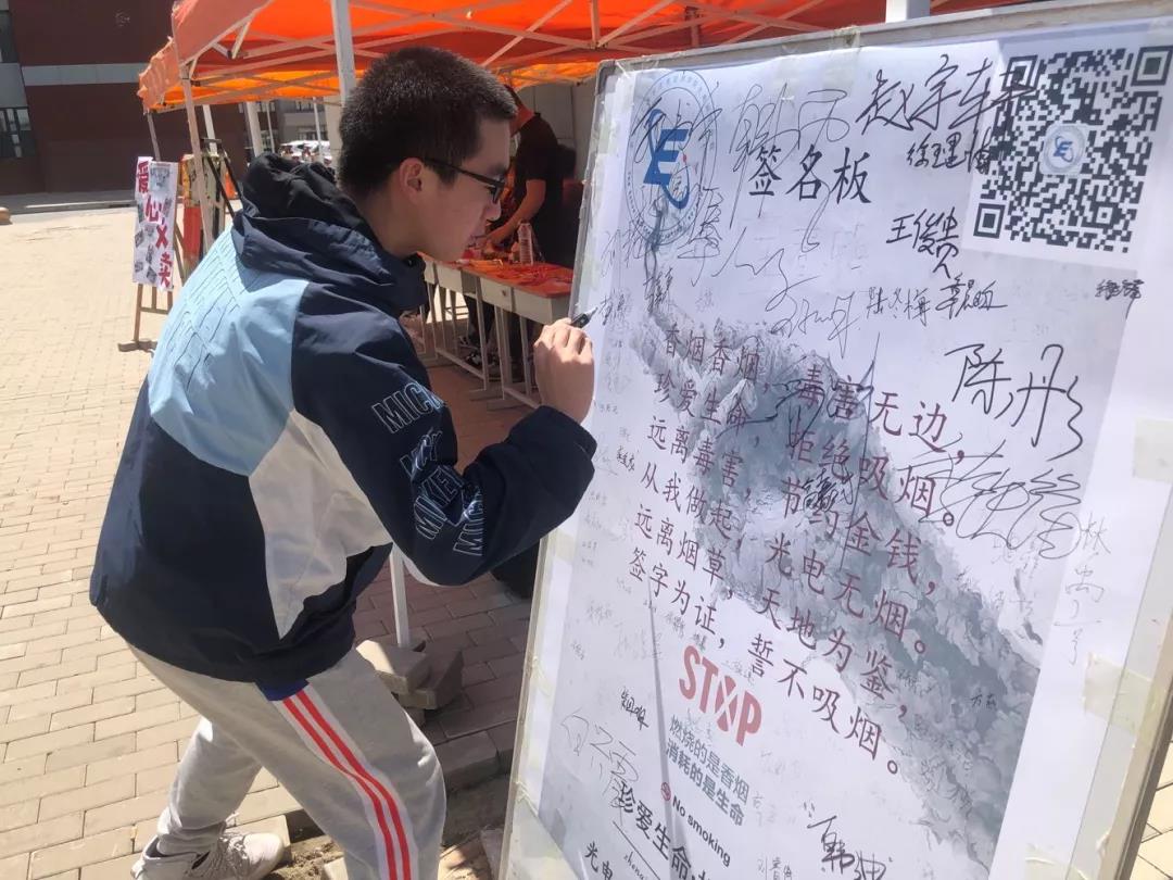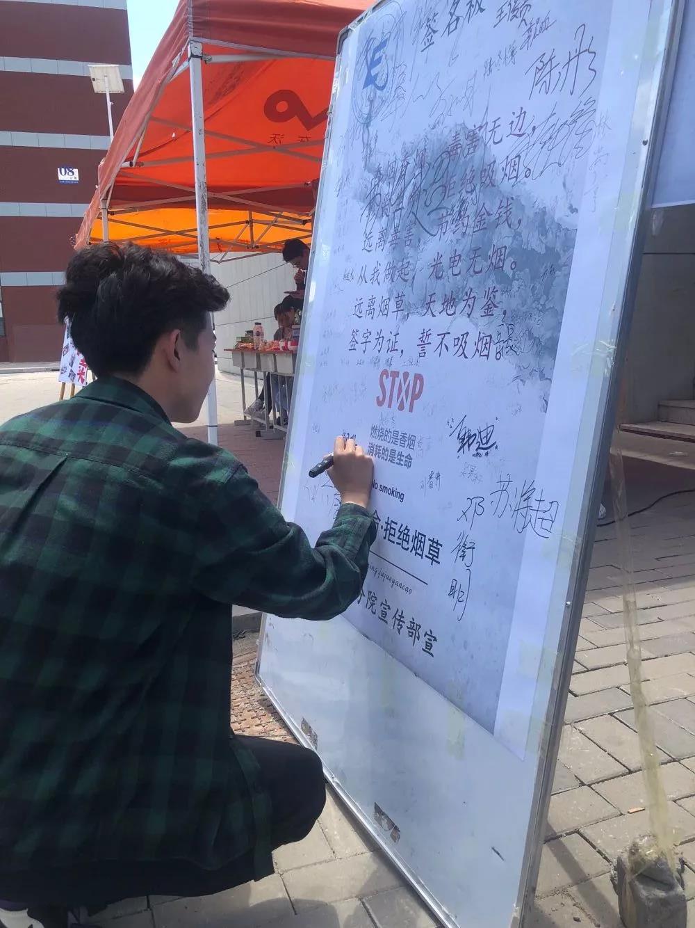 在我們的引導下,同學們依次在簽名板上簽下自己的名字,為禁煙盡自己的綿薄之力。