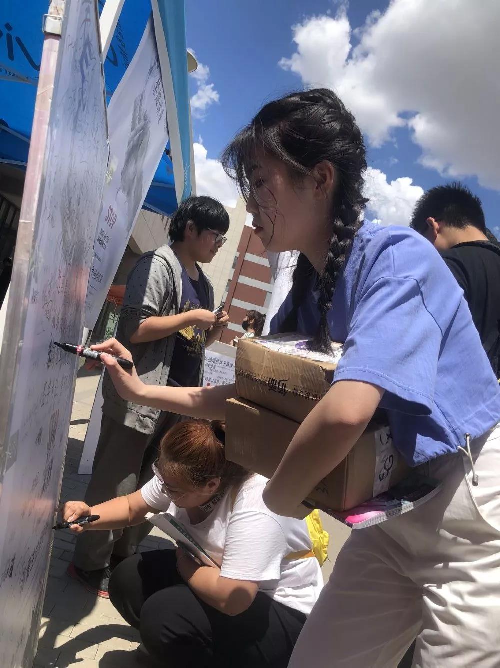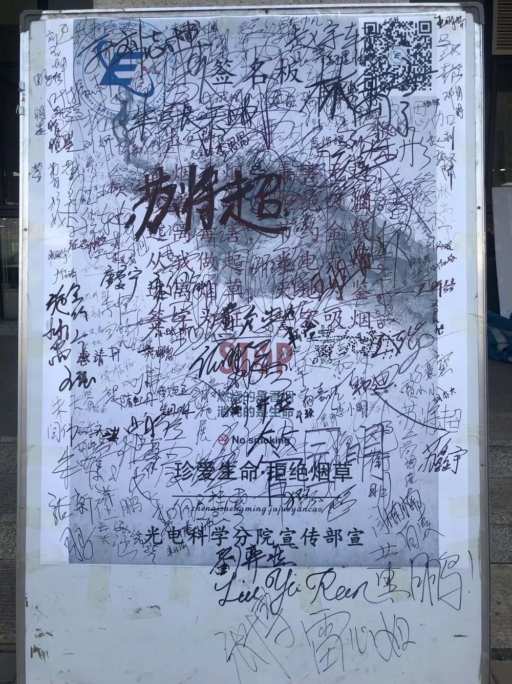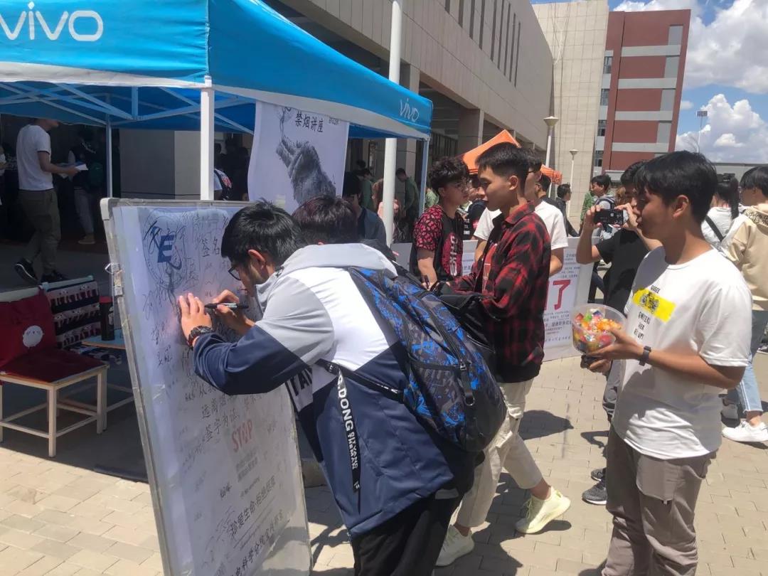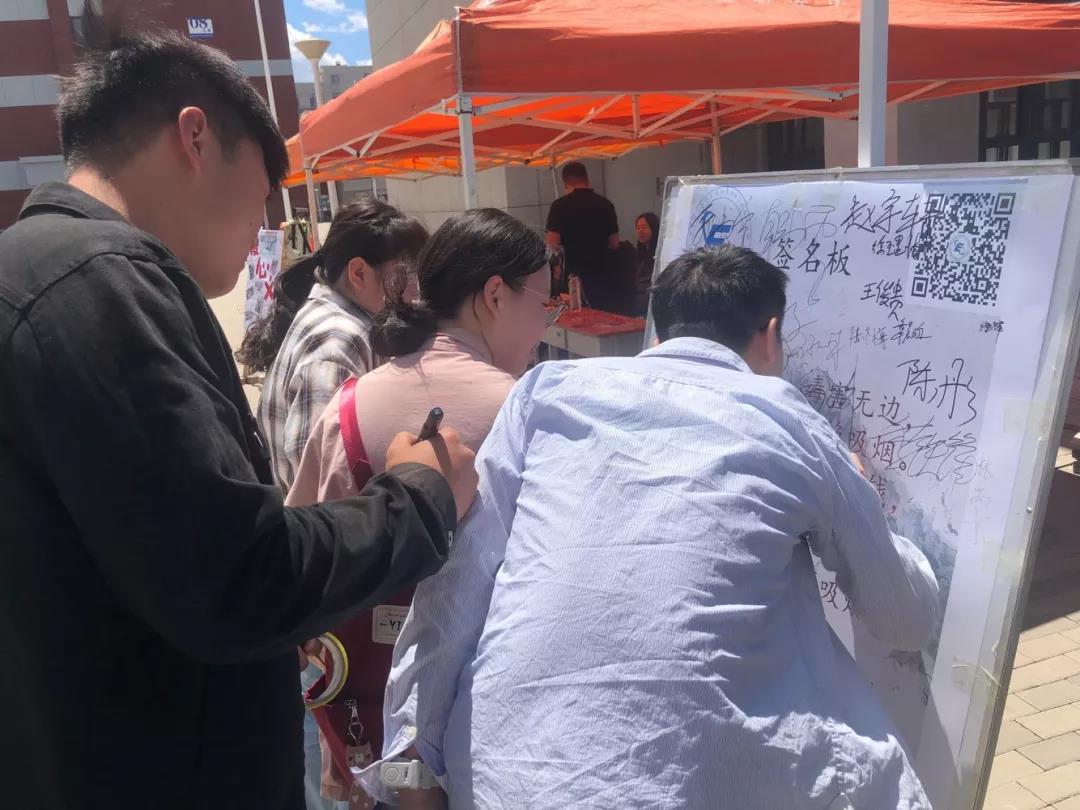 在我們的引導下,同學們依次在簽名板上簽下自己的名字,為禁煙盡自己的綿薄之力。