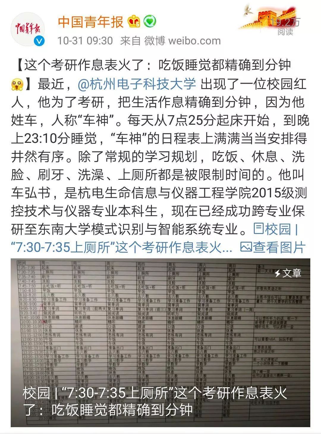 去年,為了考研,有考生把生活作息精確到分鐘;