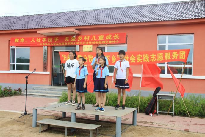 時(shí)間總是短暫的,相遇的那一刻就預(yù)示著分別。終于,我們的支教之旅到了最后一天,孩子們和志愿者老師的文藝匯報(bào)演出,為這次的支教畫上了圓滿句號(hào)。