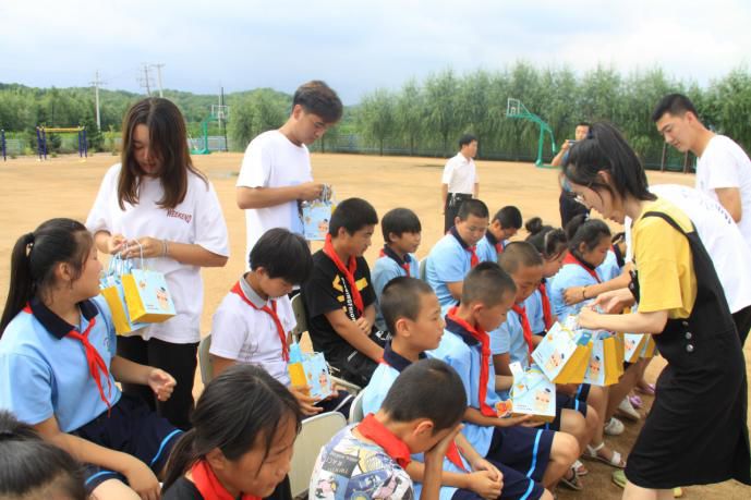 文藝匯演過后小老師們?yōu)楹⒆觽兯蜕狭诵《Y物作為紀(jì)念