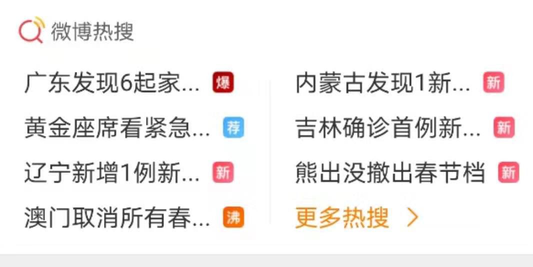 近日來,只要打開網(wǎng)絡(luò)就可以看見關(guān)于新型冠狀病毒的消息鋪天蓋地而來,抖音,微博騰訊新聞等等,比比皆是,就連有的春節(jié)檔電影也都相繼撤檔。