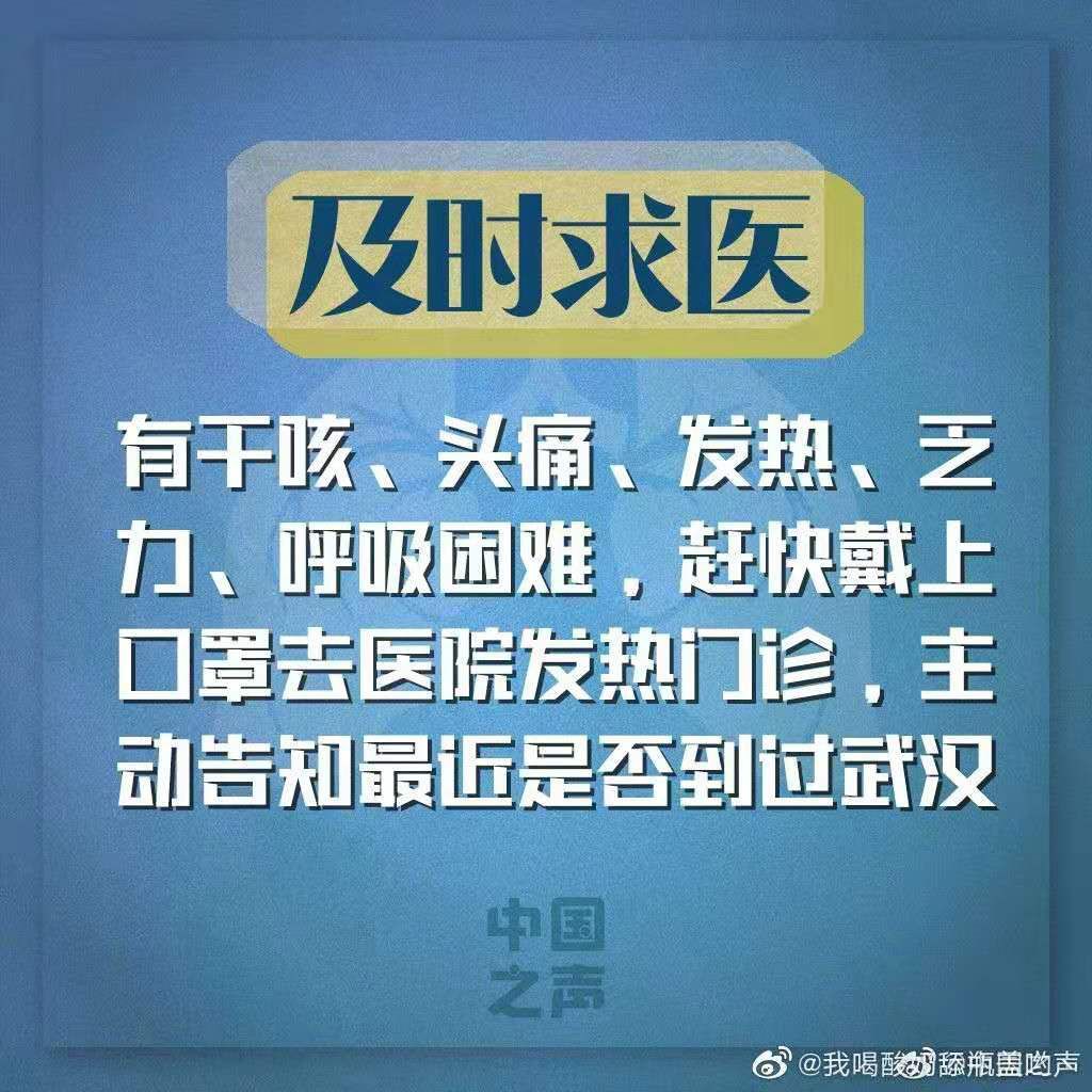 最后希望大家減少外出聚會(huì),少去人群密集的地方,出門要戴口罩,拒絕相信任何謠言,要做好相對應(yīng)的防范措施,發(fā)燒難受應(yīng)及時(shí)就醫(yī),不要拖延以免誤事。