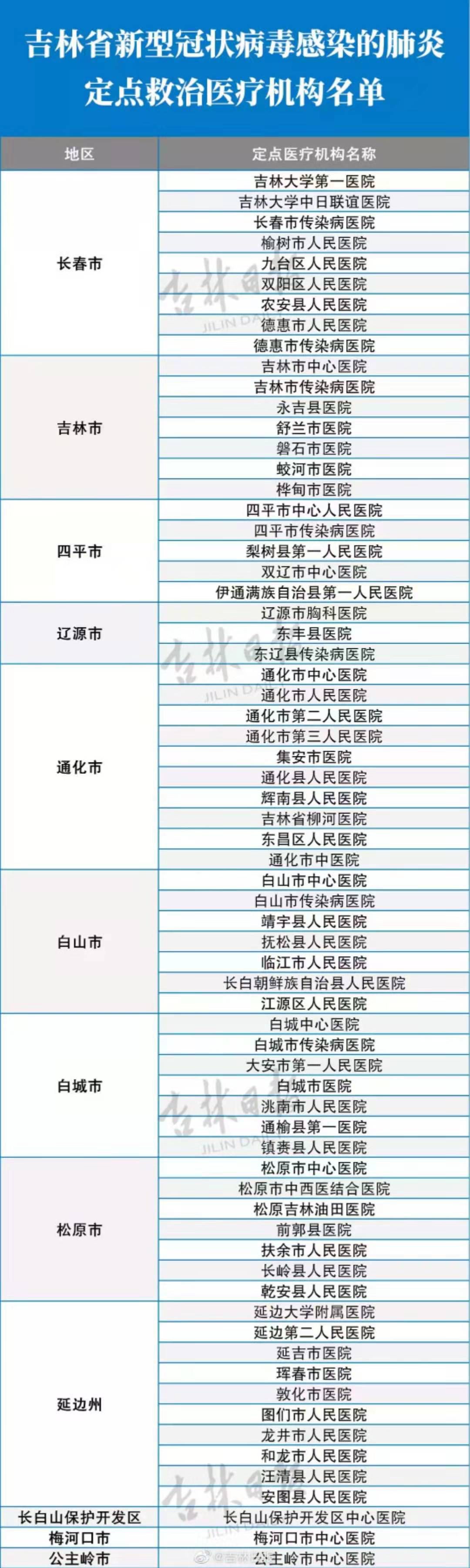 吉林省新型冠狀病毒感染的肺炎定點(diǎn)救治醫(yī)療結(jié)構(gòu)名單