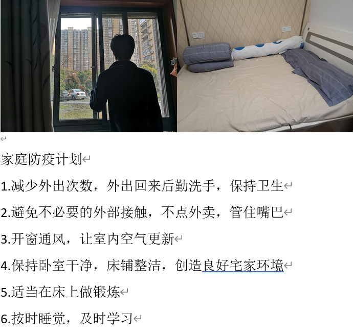 曾把一覺睡到自然醒當(dāng)作特別奢侈,新冠肺炎疫情爆發(fā),使每個(gè)人的生活習(xí)慣都發(fā)生了改變。作為接受過高等教育的當(dāng)代大學(xué)生雖然不能上第一線為國(guó)效力,但在家多陪陪家人并力所能及的打掃自己的“小窩”使家里擁有一個(gè)好的生活環(huán)境,好的心情,下面讓我們看看疫情期間光電學(xué)子在家是怎么做好防疫措施的吧!