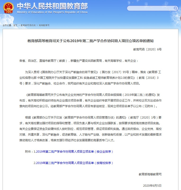 自2014年起,教育部高等教育司為貫徹落實(shí)《國(guó)務(wù)院辦公廳關(guān)于深化高等學(xué)校創(chuàng)新創(chuàng)業(yè)教育改革的實(shí)施意見(jiàn)》(國(guó)辦發(fā)〔2015〕36號(hào))和《國(guó)務(wù)院辦公廳關(guān)于深化產(chǎn)教融合的若干意見(jiàn)》(國(guó)辦發(fā)〔2017〕95號(hào))精神,深化產(chǎn)教融合、產(chǎn)學(xué)合作、協(xié)同育人,匯聚企業(yè)資源支持高校專(zhuān)業(yè)綜合改革和創(chuàng)新創(chuàng)業(yè)教育,面向企業(yè)征集合作項(xiàng)目,以產(chǎn)業(yè)和技術(shù)發(fā)展的最新需求推動(dòng)高校人才培養(yǎng)改革。
