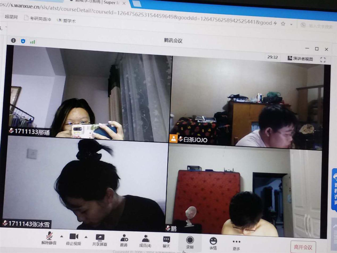 受疫情影響學(xué)校無(wú)法正常開(kāi)學(xué),在家也沒(méi)法安心學(xué)習(xí),都感到有些焦慮,經(jīng)過(guò)討論,我們幾個(gè)平常在學(xué)校一起上課的小伙伴就決定大家一起互相監(jiān)督學(xué)習(xí),于是就建了QQ群,方便開(kāi)騰訊會(huì)議一起學(xué)習(xí)。在加入QQ群之后發(fā)現(xiàn)學(xué)習(xí)效率比之前高了很多,而且可以和同學(xué)們?cè)埔?jiàn)面,有時(shí)學(xué)累了還可以和大家一起聊聊天,讓學(xué)習(xí)變得有趣起來(lái),同時(shí)大家也都收獲滿滿。最后希望大家都成功上岸,去到心儀的學(xué)校。