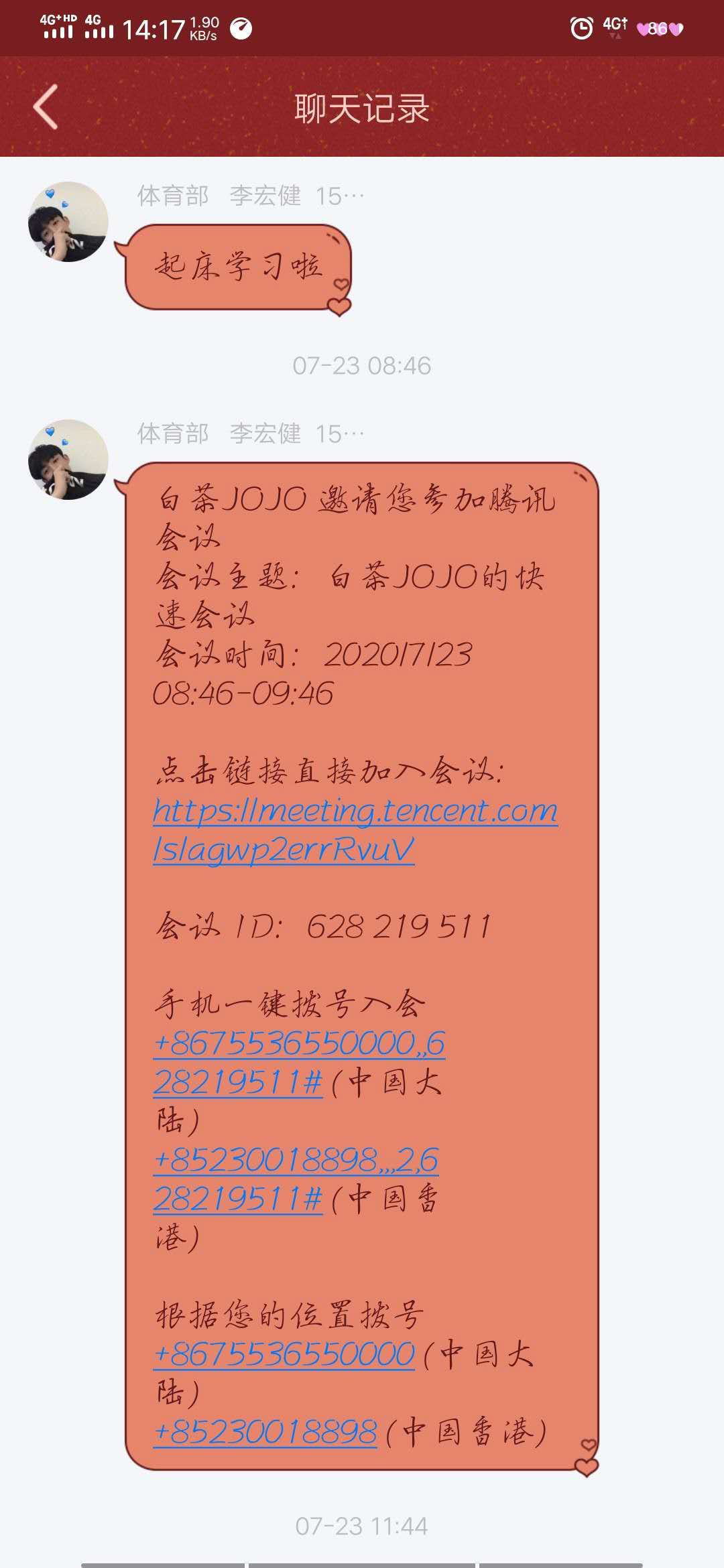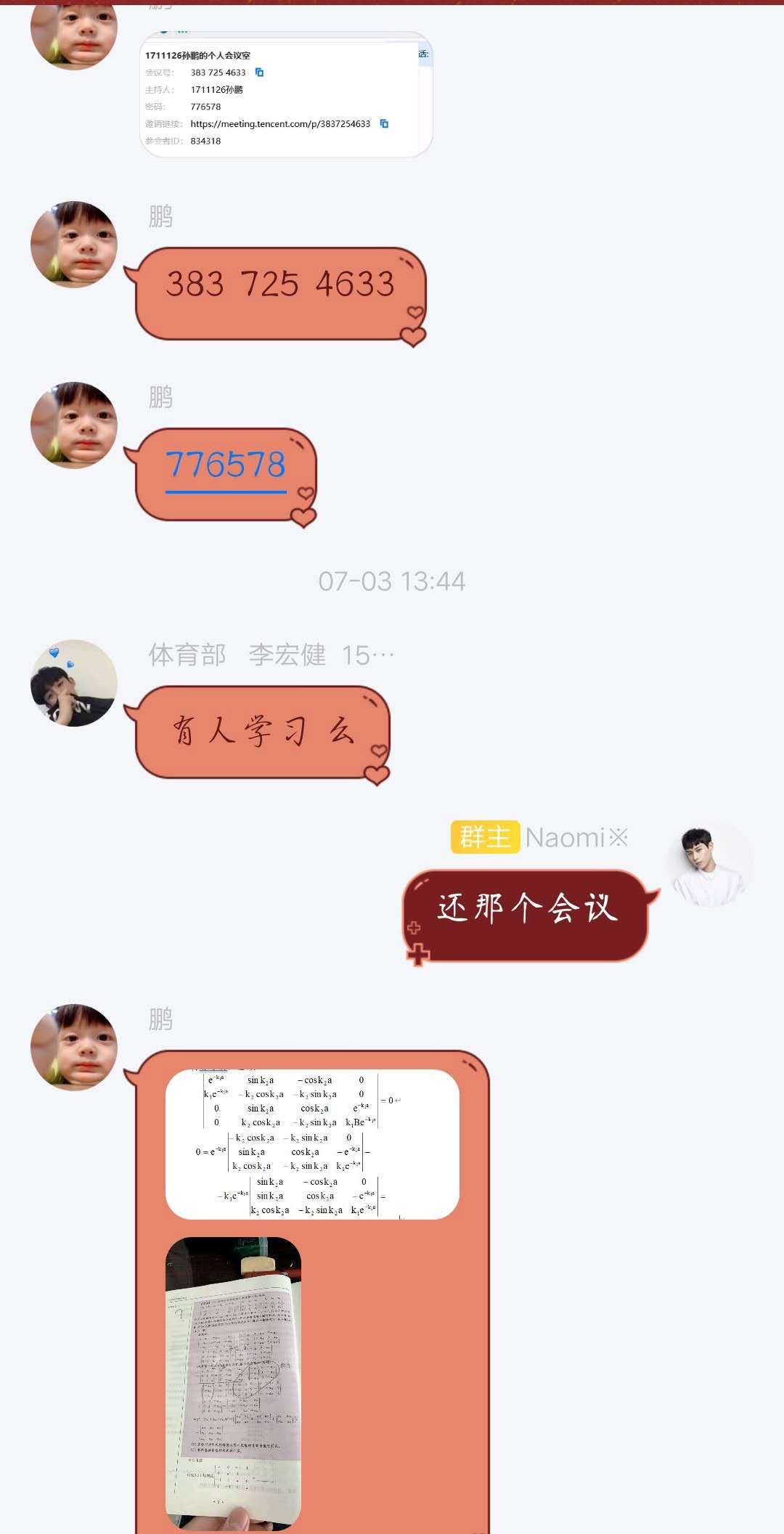 最早是建qq群是期末考試的時(shí)候,用來(lái)期末一起復(fù)習(xí)??纪暝嚭笕豪锏耐瑢W(xué)恰巧都是考研的學(xué)生,疫情期間都不能去圖書(shū)館,在家自己學(xué)習(xí)效率低。就都計(jì)劃著每天一起打卡學(xué)習(xí)趁著暑假好好復(fù)習(xí) ,后來(lái)就發(fā)展成每天用騰訊會(huì)議一起上視頻學(xué)習(xí)。視頻學(xué)習(xí)更有學(xué)習(xí)氛圍讓自己不再孤單學(xué)習(xí)效率提高,遇到難題時(shí)候可以一起解決讓彼此少走很多彎路,鉆牛尖時(shí)候也能有人疏導(dǎo)一下。作為一名考研黨很幸運(yùn)能和志同道合的朋友一起進(jìn)步,作為一班的班長(zhǎng)也很開(kāi)心能在學(xué)習(xí)中和班級(jí)同學(xué)共進(jìn)退。