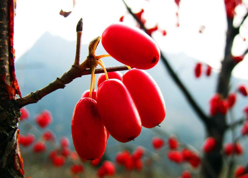 插茱萸是重陽節(jié)里重要的標志之一。茱萸生長于溫暖地帶,也叫越椒或者艾子,屬于常綠小喬木,果實呈長橢圓形,成熟時果實呈紅色,可用做中藥。茱萸葉可治霍亂,根可殺蟲,所以古時候的人們插茱萸用來防止害蟲,抑制瘟氣,寓意著驅災辟邪。