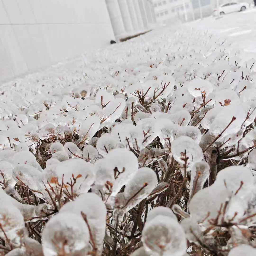 在推開窗的那一刻,入目是一番銀裝素裹的雪景??丈搅攘?,萬(wàn)籟俱寂,從遠(yuǎn)處的瑩白山頂?shù)轿蓍苌险凵涔獠实谋?,從雨凇中的點(diǎn)點(diǎn)翠綠到涂鴉墻上的濃墨重彩,大雪中的天地既是剛?cè)岵?jì)的巧妙融合,更是動(dòng)律與清凈的交織融匯。六棱體狀的雪花點(diǎn)綴著山間的一片素色,校園在大自然的精心裝飾下,逐漸變得亮麗起來(lái)。