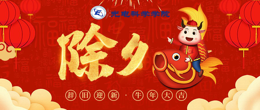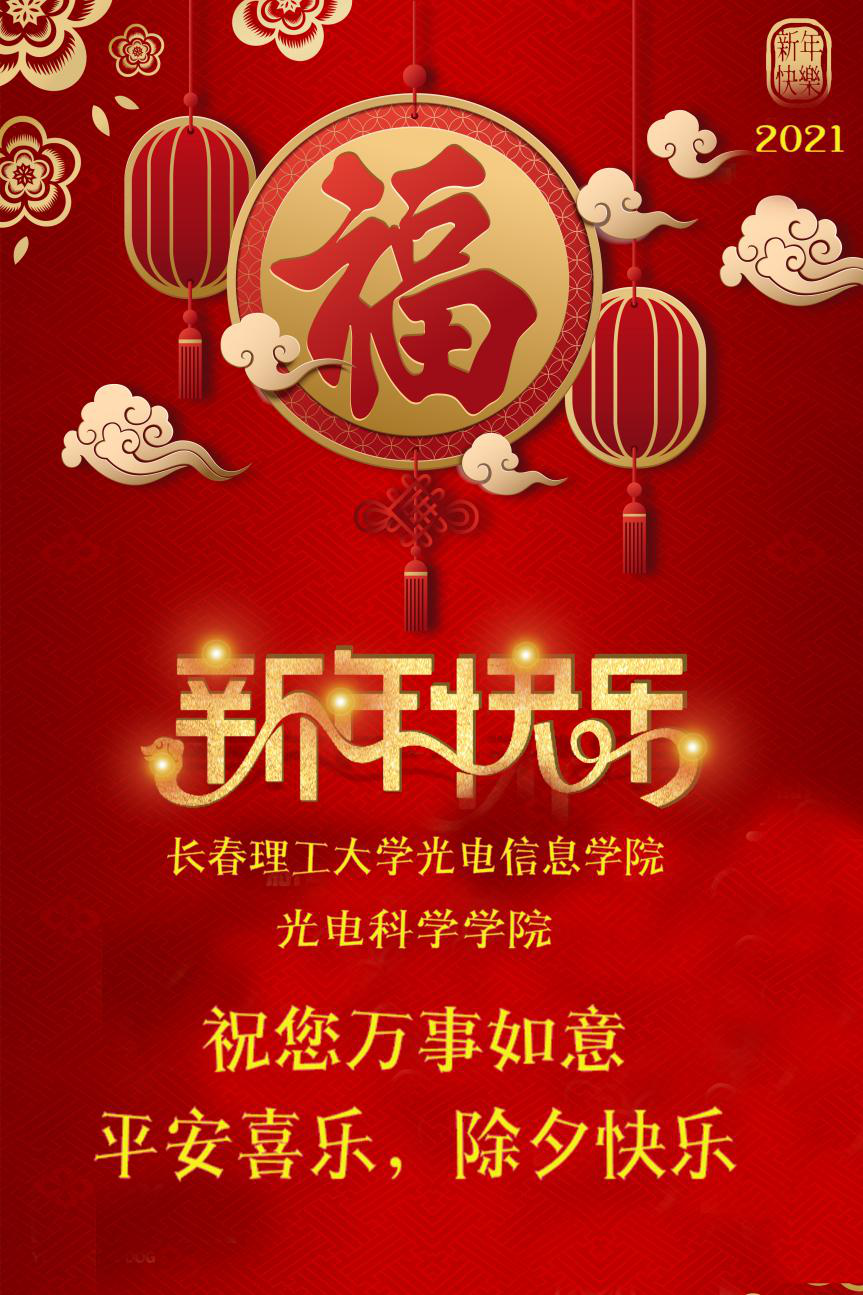 除夕的鞭炮是吉祥好運(yùn)的樂章,除夕的燈火是溫馨團(tuán)圓的希望,除夕的餃子香是對未來美滿幸福的憧憬,除夕的祝福是最美好的祝愿。在此光電科學(xué)學(xué)院祝大家諸事順意,心想事成!