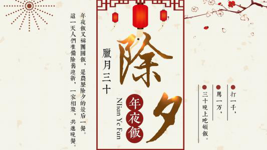 大年三十除夕,是中國人一年中最重要,最期待也是最精心準(zhǔn)備的一個節(jié)日。除夕,代表著中國人的歲末與新始。它是萬家燈火不滅,它是全家歡聚一堂,它是個人的經(jīng)歷成長。