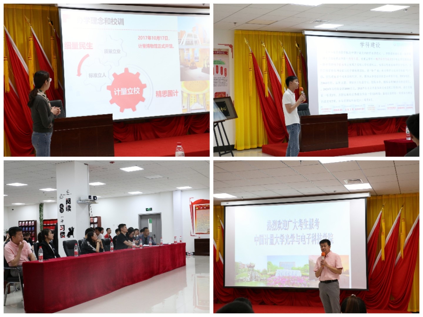 參觀結(jié)束后,在圖書館四樓的新時(shí)代文明中心召開了宣講會,中國計(jì)量大學(xué)的老師向參會人員介紹了中國計(jì)量大學(xué)的師資力量及辦學(xué)理念和研究生招生的注意事項(xiàng),并且詳細(xì)講解了2022年碩士生招考流程和招收專業(yè)。劉老師講到中國計(jì)量大學(xué)不僅是一所以計(jì)量、標(biāo)準(zhǔn)、質(zhì)量、市場監(jiān)管和檢驗(yàn)檢疫為辦學(xué)特色的本科院校,更是有一個(gè)強(qiáng)大、負(fù)責(zé)的師資隊(duì)伍和一個(gè)完整、多樣化的研究生培養(yǎng)平臺。同時(shí),也設(shè)立了豐厚的研究生獎(jiǎng)助學(xué)金以及競賽獎(jiǎng)勵(lì),以此來激勵(lì)廣大同學(xué)考研的積極性。