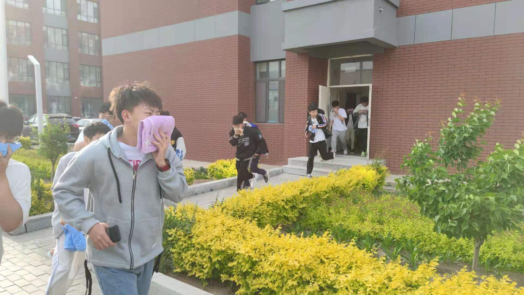 隨著急促的警報(bào)聲響起,指揮人員迅速到位,同學(xué)們用濕毛巾捂住口鼻,并根據(jù)預(yù)定路線有序從通道迅速撤離,在預(yù)先所安排的位置整理集合完畢。整個(gè)過(guò)程中井然有序,達(dá)到了提升同學(xué)們緊急逃生能力的目標(biāo)。