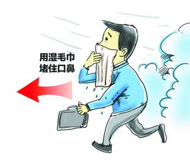 2.用濕手帕或毛巾捂住口鼻防止中毒