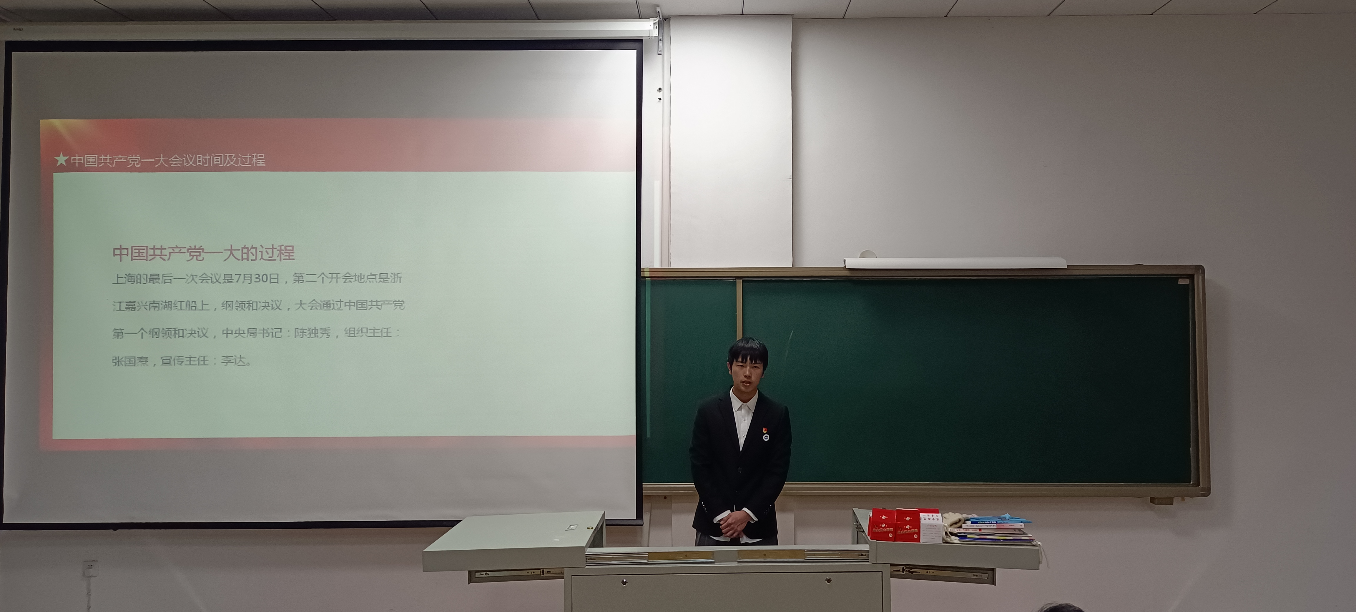 19級(jí)學(xué)生代表葛軒瑜從馬克思主義在中國(guó)的轉(zhuǎn)播入手,講述了中國(guó)各地共產(chǎn)主義小組建立,蔡和森提出組建中國(guó)共產(chǎn)黨以及中國(guó)共產(chǎn)黨一大會(huì)議時(shí)間及過程,從而展示了中國(guó)共產(chǎn)黨始終堅(jiān)持著對(duì)真理的不懈追求、始終保持著對(duì)人民的赤子之心、始終保持著高度的自我革命,才走出了一段由小到大、由弱到強(qiáng)、不斷發(fā)展壯大的百年光輝歷程。