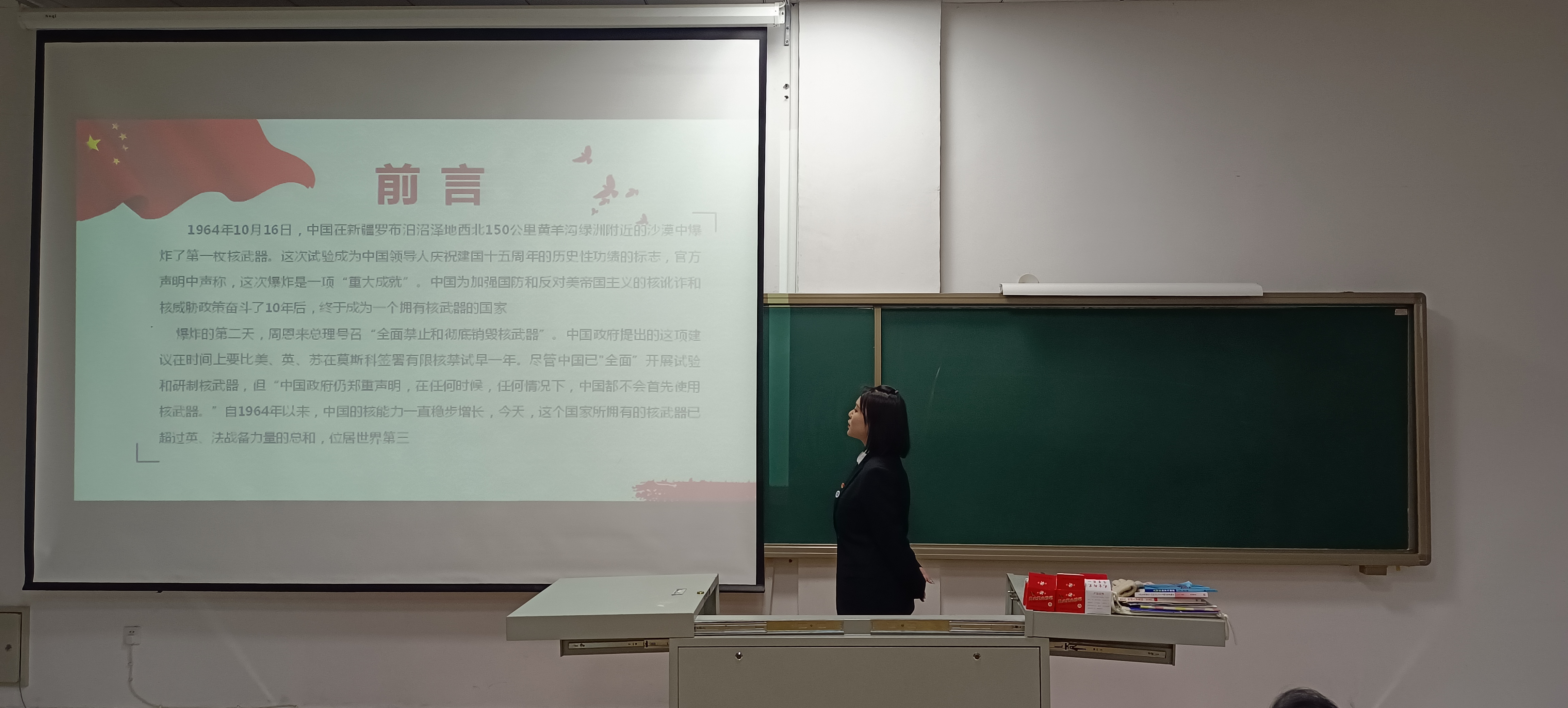 19級(jí)學(xué)生代表邱竟萱主講新中國(guó)史,她借用毛澤東在論十大中指出的話“正確處理這些關(guān)系,是為了把黨內(nèi)黨外、國(guó)內(nèi)國(guó)外一切積極因素都調(diào)動(dòng)起來,把我國(guó)建設(shè)成為一個(gè)強(qiáng)大的社會(huì)主義國(guó)家。”然后介紹了建國(guó)以來無數(shù)海內(nèi)外愛國(guó)志士團(tuán)結(jié)奮斗,為實(shí)現(xiàn)中華民族偉大復(fù)興而共同努力。她的演講使同學(xué)們?cè)诟鼘拸V的歷史視野中感受到成長(zhǎng),深化了同學(xué)們對(duì)“不忘初心、牢記使命”的認(rèn)識(shí)和理解。