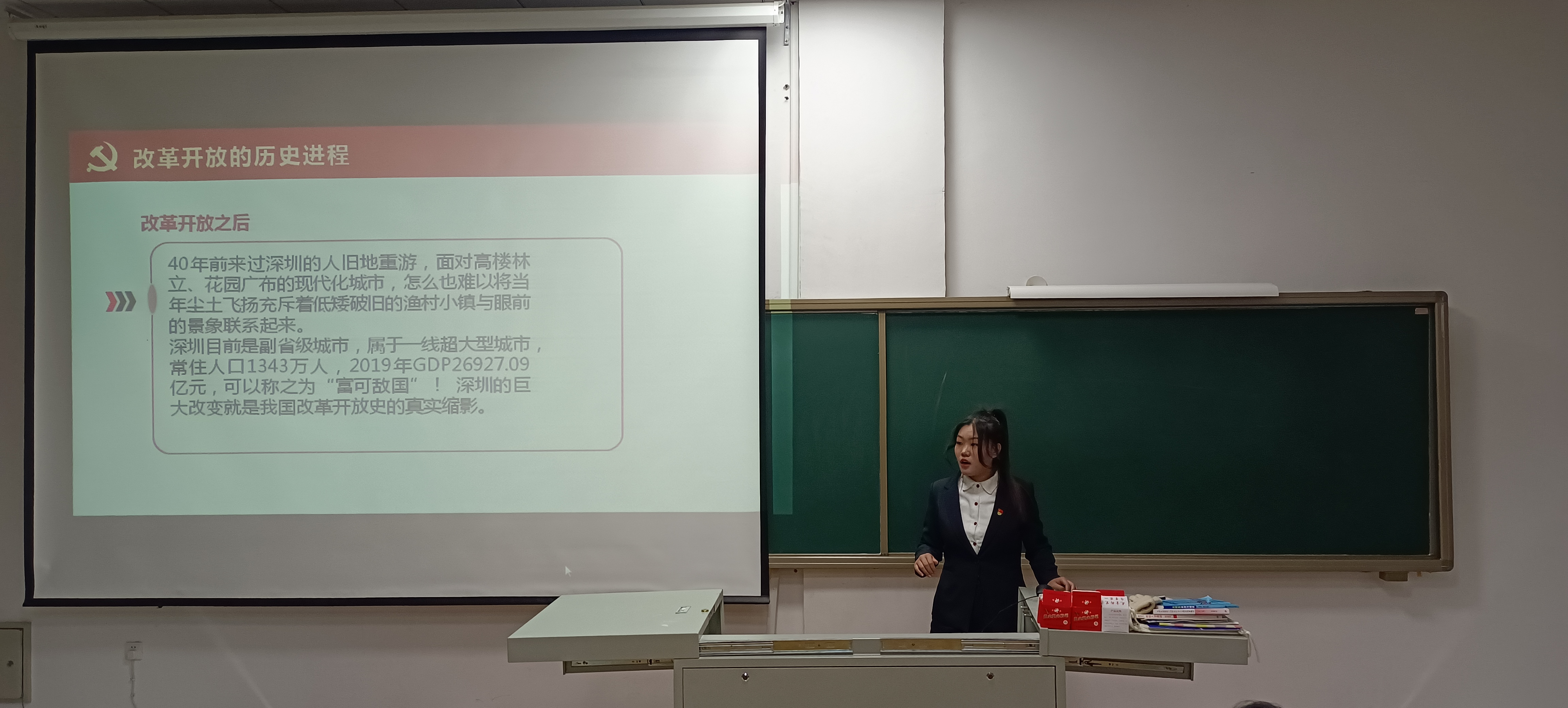 19級(jí)學(xué)生代表焦健講的主要是改革開放史,首先提出改革開放前期鄧小平同志實(shí)行對(duì)外開放的政策,艱難探索社會(huì)主義發(fā)展的道路。然后在中國(guó)共產(chǎn)黨的領(lǐng)導(dǎo)下,我國(guó)在探索社會(huì)主義發(fā)展的道路上越走越遠(yuǎn),綜合國(guó)力日漸強(qiáng)盛,百年征程,波瀾壯闊;百年初心,歷久彌堅(jiān)。每一代的中國(guó)共產(chǎn)黨人都在為實(shí)現(xiàn)中華民族偉大復(fù)興的夢(mèng)想而不懈努力著。