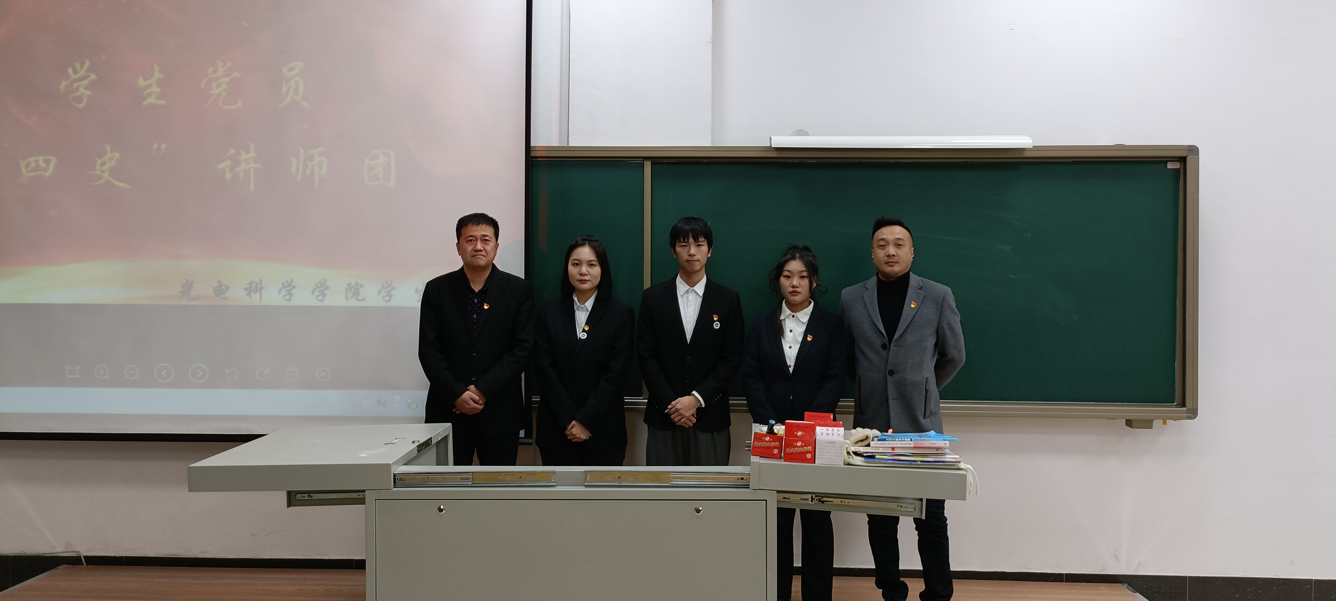 為深入推進(jìn)黨史、新中國(guó)史、改革開放史、社會(huì)主義發(fā)展史學(xué)習(xí)教育,充分發(fā)揮學(xué)生骨干的思想引領(lǐng)作用。11月22日下午4點(diǎn)10分,光電科學(xué)學(xué)院在東階201開展了學(xué)生四史講師團(tuán)特色活動(dòng),參加本次活動(dòng)的有錢爽老師、劉可老師以及講師團(tuán)學(xué)生代表和學(xué)院全體大一學(xué)生。