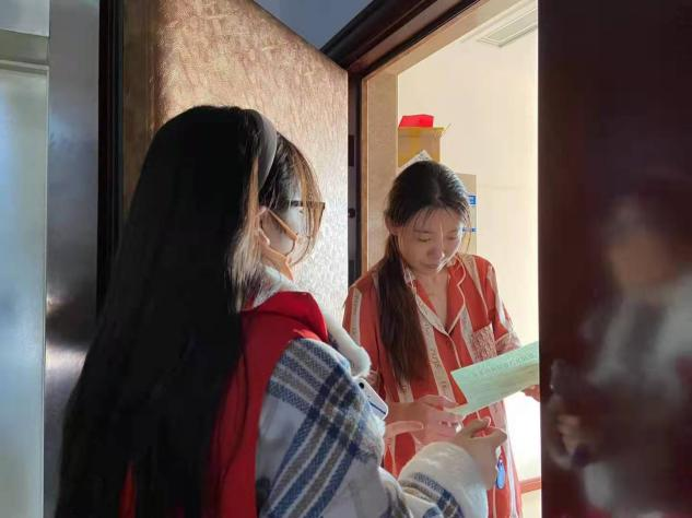 我是21級光電科學(xué)學(xué)院,新能源21131班的團(tuán)支書張雨楠。也是一名共青團(tuán)員。鑒于國內(nèi)疫情嚴(yán)峻形勢,作為一名大學(xué)生,于2022年1月21日積極參與吉林省長春市九臺區(qū)公園社區(qū)疫情防控志愿者活動。在其中負(fù)責(zé)疫情防控調(diào)查工作,主要以調(diào)查省內(nèi)外來(返)九人員的報備。同時,落實七天健康檢測措施。每天早上九點到社區(qū)工作崗位,準(zhǔn)備挨家挨戶,敲門走社區(qū)普查社區(qū)來返人員,并及時上報返鄉(xiāng)人員。