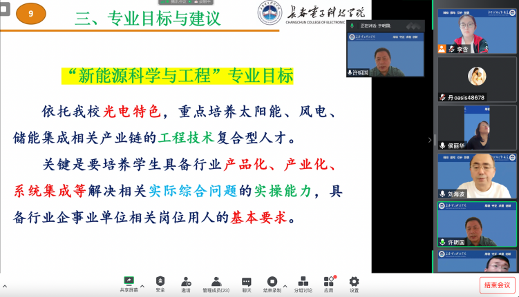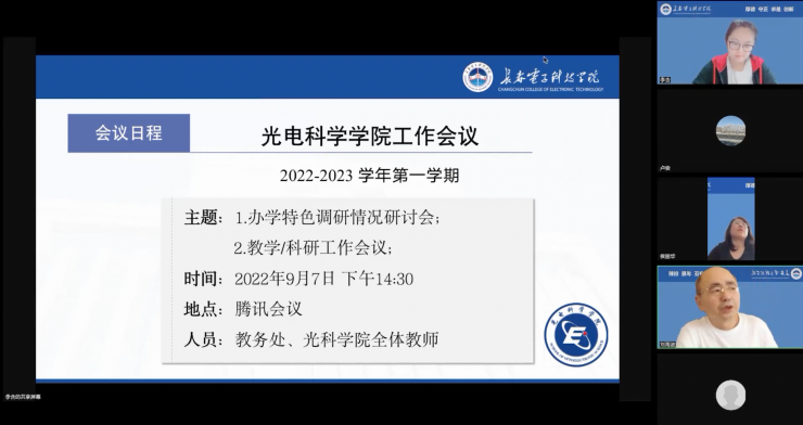 為進一步強化特色發(fā)展,推進高水平應(yīng)用型現(xiàn)代產(chǎn)業(yè)大學(xué)建設(shè),9月7日下午14:30于騰訊會議室,學(xué)院召開了辦學(xué)特色調(diào)研情況線上研討會,本次會議院領(lǐng)導(dǎo)高度重視,學(xué)院院長、副院長、各專業(yè)教研室/實驗室主任及全體教師參加了研討會,會議由教學(xué)副院長李含主持,教務(wù)處教務(wù)科科長王志勇參加會議。