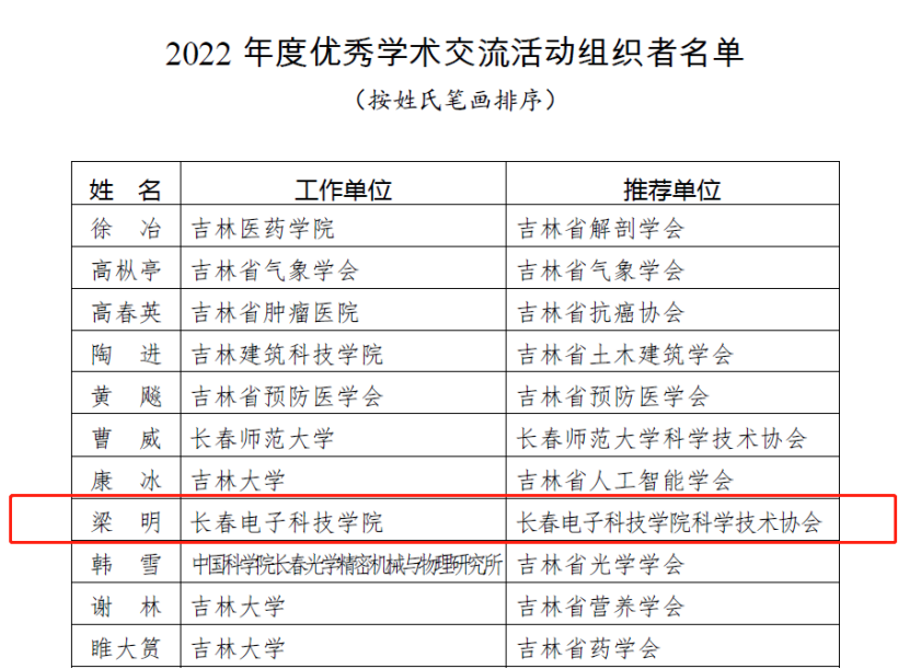 近日,在吉林省科協(xié)公示的《關(guān)于公布2022年度吉林省科協(xié)學(xué)會(huì)學(xué)術(shù)工作評(píng)優(yōu)表彰結(jié)果的通知》名單中,我校光電科學(xué)學(xué)院申報(bào)的“發(fā)揮光電優(yōu)勢(shì)專業(yè),培養(yǎng)吉林棟梁之才”項(xiàng)目榮獲優(yōu)秀學(xué)術(shù)交流項(xiàng)目及優(yōu)秀學(xué)術(shù)交流活動(dòng)組織者兩項(xiàng)殊榮。