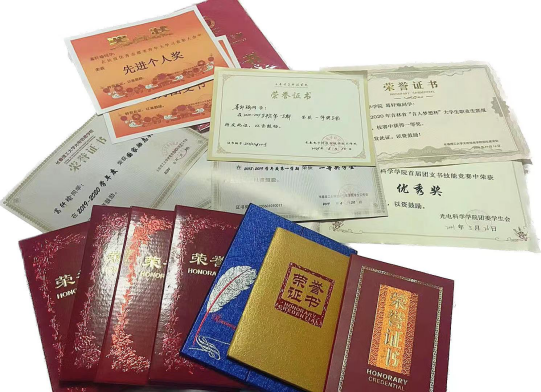 他榮獲3次“國家勵(lì)志獎(jiǎng)學(xué)金”,5次“校內(nèi)一等獎(jiǎng)學(xué)金”,3次“校內(nèi)二等獎(jiǎng)學(xué)金”,榮獲“三好學(xué)生”、“優(yōu)秀班級(jí)干部”、“優(yōu)秀團(tuán)支書”等校內(nèi)榮譽(yù)稱號(hào)。在省級(jí)職業(yè)生涯與規(guī)劃比賽中榮獲“優(yōu)秀獎(jiǎng)”,全省高校“讀黨史 學(xué)黨史 筑信仰”短視頻大賽三等獎(jiǎng),2021年“挑戰(zhàn)杯”吉林省大學(xué)生課外學(xué)術(shù)科技作品競(jìng)賽紅色專項(xiàng)活動(dòng)三等獎(jiǎng)。
