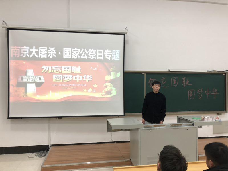 為了緬懷南京大屠殺的無辜死難者和所有慘遭日本侵略者殺戮的死難同胞,以歷史警醒、激勵當代大學生勿忘國恥、珍愛和平。今天上午,光電科學分院18級全體同學在西階304舉辦了“國家公祭日”專題活動。