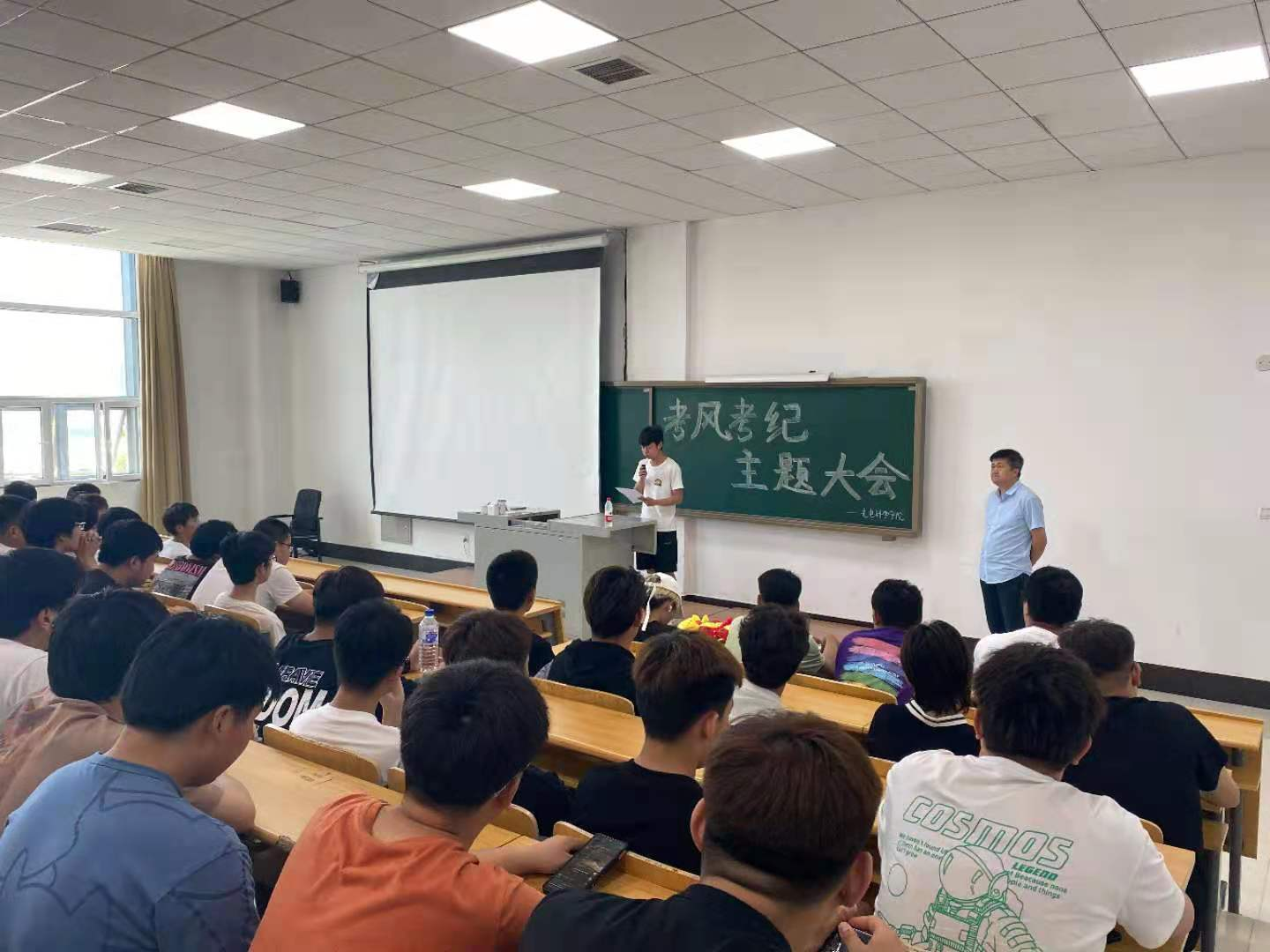在開(kāi)會(huì)期間,劉可老師分別邀請(qǐng)了學(xué)生代表上臺(tái)宣讀了考試過(guò)程中的學(xué)生守則:
