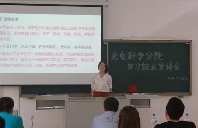 首先,李楊老師代表光電科學(xué)分院感謝蒞臨本場(chǎng)宣講會(huì)的兩位公司代表,并對(duì)前來(lái)招聘的公司進(jìn)行簡(jiǎn)明的介紹后,宣講會(huì)正式開(kāi)始。