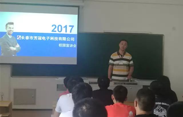 公司代表王經(jīng)理播放了公司的宣傳片,讓到場的同學們了解了芳冠電子科技有限公司的概況,從而激發(fā)同學們的興趣。接下來王經(jīng)理向同學們介紹了廠房設(shè)施、經(jīng)營范圍、主要客戶、薪資福利、晉升通道、實習崗位等信息。他表示,長春市芳冠電子科技有限公司是原國有企業(yè)吉林紫晶電子有限責任公司改制后,由骨干職工共同組建的民營公司,前身紫晶電子成立于1997年7月份,現(xiàn)公司注冊資金1028.85萬元,擁有員工300余人,是按照現(xiàn)代企業(yè)制度建立起來的生產(chǎn)液晶顯示屏和液晶顯示模塊的大型電子企業(yè),也是中國最具規(guī)模的液晶顯示器制造商。公司現(xiàn)代化廠區(qū)面積2.5萬平方米,其中4280平方米的高潔凈度生產(chǎn)車間,凈化條件居全國同行業(yè)前列。公司引進具有國際先進水平的日本全自動化LCD制造設(shè)備和工業(yè)技術(shù),具有年產(chǎn)液晶模塊2千萬塊的生產(chǎn)能力。