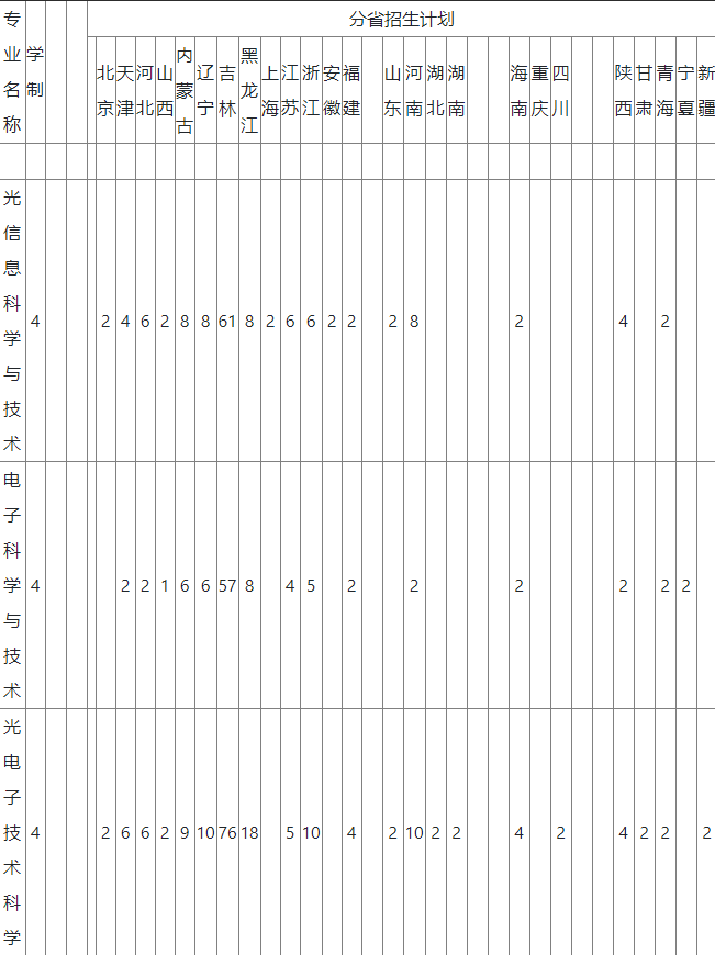 往年分省、分專業(yè)招生來源計(jì)劃表