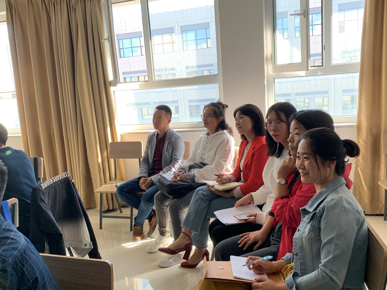 開展此次觀摩課的目的是激勵教師們養(yǎng)成團(tuán)隊協(xié)同能力,培養(yǎng)金牌教師團(tuán)隊。教師在教學(xué)設(shè)計階段做到認(rèn)真分析社會需求與學(xué)生發(fā)展,深入學(xué)習(xí)教學(xué)理論與教學(xué)方法,用心設(shè)計課程與教學(xué)實施,在教學(xué)目標(biāo)、教學(xué)內(nèi)容、教學(xué)組織、教學(xué)評價的設(shè)計中體現(xiàn)“金課”的高階性、創(chuàng)新性和挑戰(zhàn)度。通過線上與線下融合的教學(xué)模式,實現(xiàn)對語言、思維與文化等相關(guān)能力的綜合培養(yǎng),從而真正達(dá)成符合國家、社會與學(xué)生需求的育人成效。
