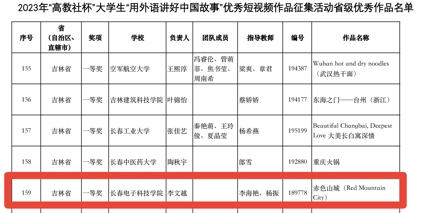 近日,由全國高等學(xué)校大學(xué)外語教學(xué)研究會指導(dǎo),南京大學(xué)主辦,高等教育出版社協(xié)辦的第二屆“高教社杯”大學(xué)生“用外語講好中國故事”優(yōu)秀短視頻作品征集活動評審結(jié)果揭曉,我校通識教育學(xué)院李海艷老師和楊振老師指導(dǎo)的學(xué)生李文越制作的《赤色山城》(Red Mountain City)短視頻作品榮獲吉林省一等獎。