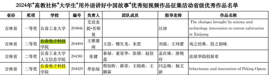 我校通識(shí)教育學(xué)院劉斌老師和王瑋蕾老師指導(dǎo)的學(xué)生王雅馨雨團(tuán)隊(duì)和小組成員王浩、穆生龍、朱萱制作的《戲之經(jīng)典,技之韻味》短視頻作品榮獲吉林省二等獎(jiǎng)。閆志梅老師和楊文新老師指導(dǎo)的單依燦團(tuán)隊(duì)以及小組成員程鈺昕、薛菲、王曉萌、王顥霖制作的《Inheritance and innovation of Peking Opera》短視頻作品也榮獲吉林省二等獎(jiǎng)。王雅馨雨團(tuán)隊(duì)和單依燦團(tuán)隊(duì)都在指導(dǎo)老師的悉心指導(dǎo)下積極準(zhǔn)備,經(jīng)過(guò)深入討論研究,用戲曲經(jīng)典來(lái)發(fā)揚(yáng)中華優(yōu)秀傳統(tǒng)文化。他們都對(duì)京劇進(jìn)行了深入的研究,積極了解京劇文化,不斷查閱資料,自己去體悟京劇文化,不畏困難,踔厲奮發(fā),篤行不怠。在快節(jié)奏的當(dāng)下,他們將京劇與先進(jìn)的數(shù)字技術(shù)、科技創(chuàng)新相融合,使得京劇以包容自信的嶄新姿態(tài),走向更廣闊的世界舞臺(tái)。他們用外語(yǔ)講好了中國(guó)故事。