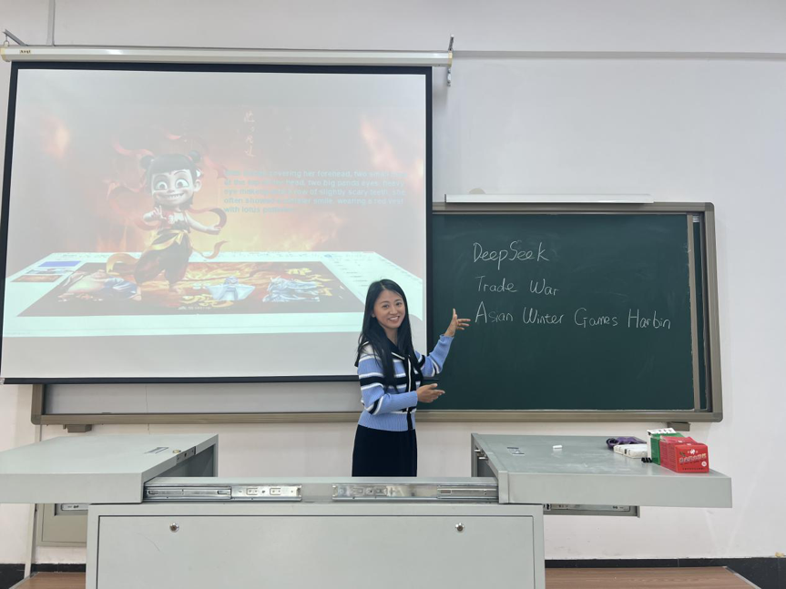 在孫博老師的課堂上,"哪吒"的東方神話與Deepseek的科技浪潮碰撞出思維火花。這位善于捕捉時代脈搏的教師,將"中國智造"等社會熱點融入教學(xué)案例,通過對比中西科幻作品中的技術(shù)倫理觀,引導(dǎo)學(xué)生在語言訓(xùn)練中培養(yǎng)批判性思維。"語言不僅是交流工具,更是解碼文明的鑰匙。"孫博老師表示,其課堂特別設(shè)計"AI時代的語言進化"專題研討,鼓勵學(xué)生用英語講述中國科技創(chuàng)新故事。