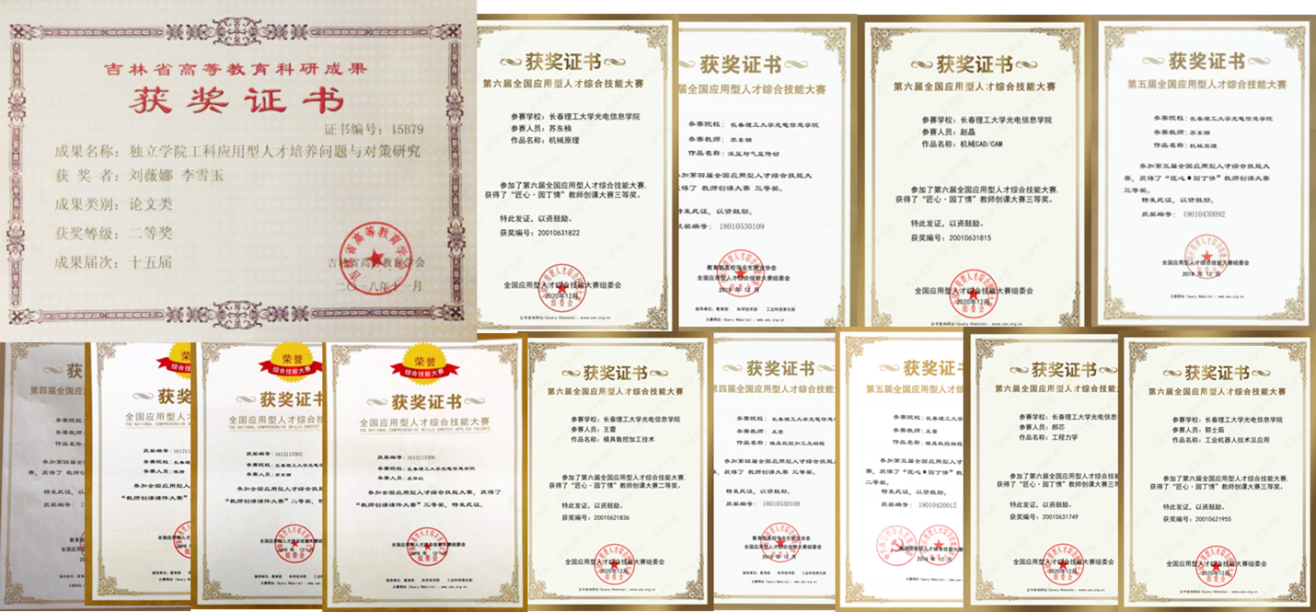 獲得第四屆、第五屆、第六屆全國應(yīng)用型人才綜合技能大賽教師獲獎18項(xiàng)。吉林省高等教育科研成果二等獎,三等獎,吉林省教育技術(shù)成果獎三等獎。