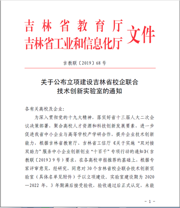 吉林省校企聯(lián)合技術(shù)創(chuàng)新實(shí)驗(yàn)室。