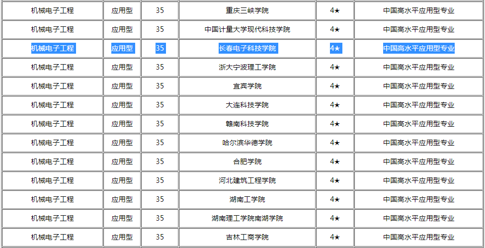 按照2022年艾瑞深校友會網(wǎng)最新公布的2021校友會中國機(jī)械類一流專業(yè)排名中:機(jī)械電子工程專業(yè)躋身2021中國一流專業(yè)排名(應(yīng)用型)4星級,中國高水平應(yīng)用型專業(yè)。