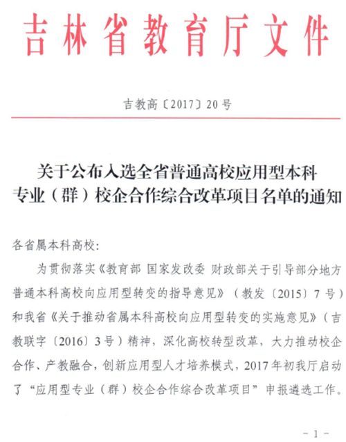 入選吉林省普通高校應(yīng)用型本科專業(yè)(群)校企合作綜合改革項(xiàng)目。