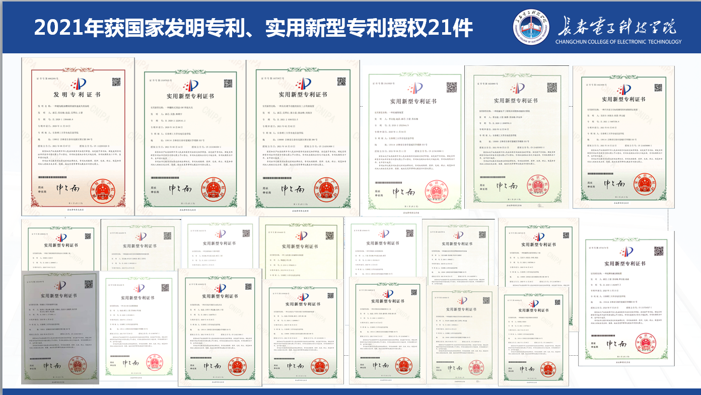 2021年獲國(guó)家發(fā)明專利、實(shí)用新型專利授權(quán)21件